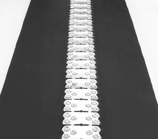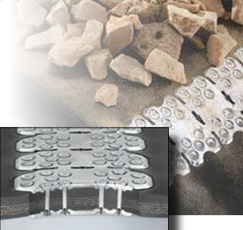 Sistema de grapas de placa sólida con remaches Flexco® se recomienda para aplicaciones de alta tensión, con un accesorio escalonado de múltiples puntos para una fijación duradera. Ideal para utilizarse con bandas de fibra longitudinal recta debido a que los remaches se separan de las fibras en lugar de desplazar la armazón.